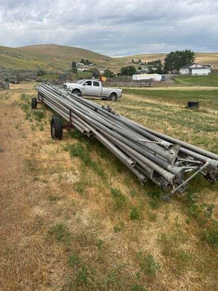 LOT 315B - PIPE TRAILER W/45PC 3X40 HAND LINES, 12PC 3X20 HAND LINES, 13PC 4X30 MAIN LINE, 3PC 4" TO 3" VALVES,